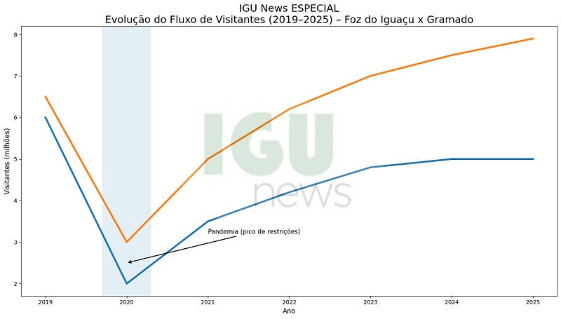 Projeções indicam que Foz pode atingir entre 7 e 8 milhões de visitantes até 2030, considerando: