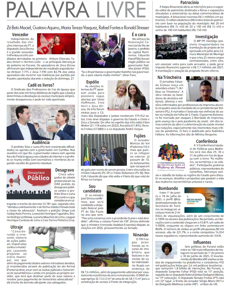 Isso e muito mais na coluna PALAVRA LIVRE desta terça-feira (29)….