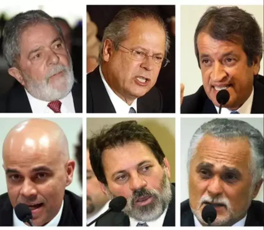 Entre os 40 denunciados, figuravam peças-chave na engrenagem do PT, como o então ministro da Casa Civil, José Dirceu, o presidente do partido, José Genoino, o tesoureiro Delúbio Soares, o secretário-geral, Silvio Pereira, e o ex-presidente da Câmara João Paulo Cunha. Todos foram afastados, condenados e presos, à exceção de Pereira, que fez um acordo para prestar serviços comunitários em troca da suspensão do processo.