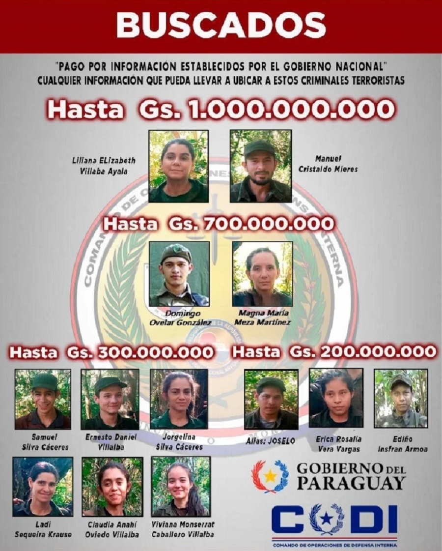 A ellos se suman supuestos nuevos integrantes identificados como Samuel Silva Cáceres (hijo de Lucio Silva, abatido años atrás); Ernesto Daniel Villalba, Jorgelina Silva Cáceres (hija de Lucio), Viviana Montserrat Caballero Villalba, Claudia Anaí Oviedo Villalba (quien sería hija de Carmen Villalba), Alcides Oviedo y Ladi Zequeira Krause, además de alias Joselo y Erika Rosalía Vega Vargas.