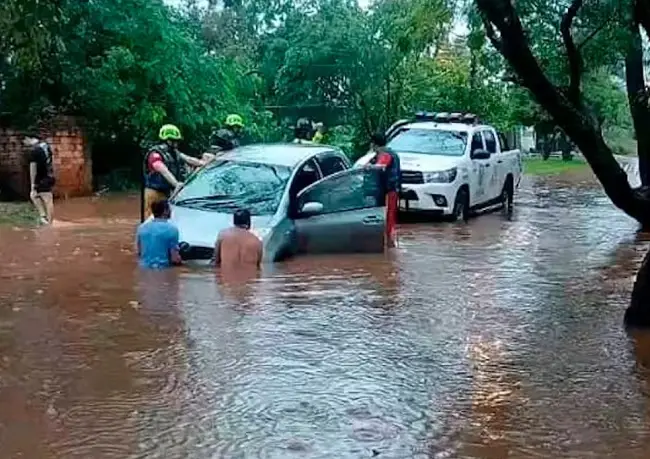 Así como en el resto del país, el diluvio se desató en horas de esta madrugada en la capital del Alto Paraná. Furiosos raudales se formaron en calles y avenidas, atrapando a más de un automovilista camino a sus lugares de trabajo.
